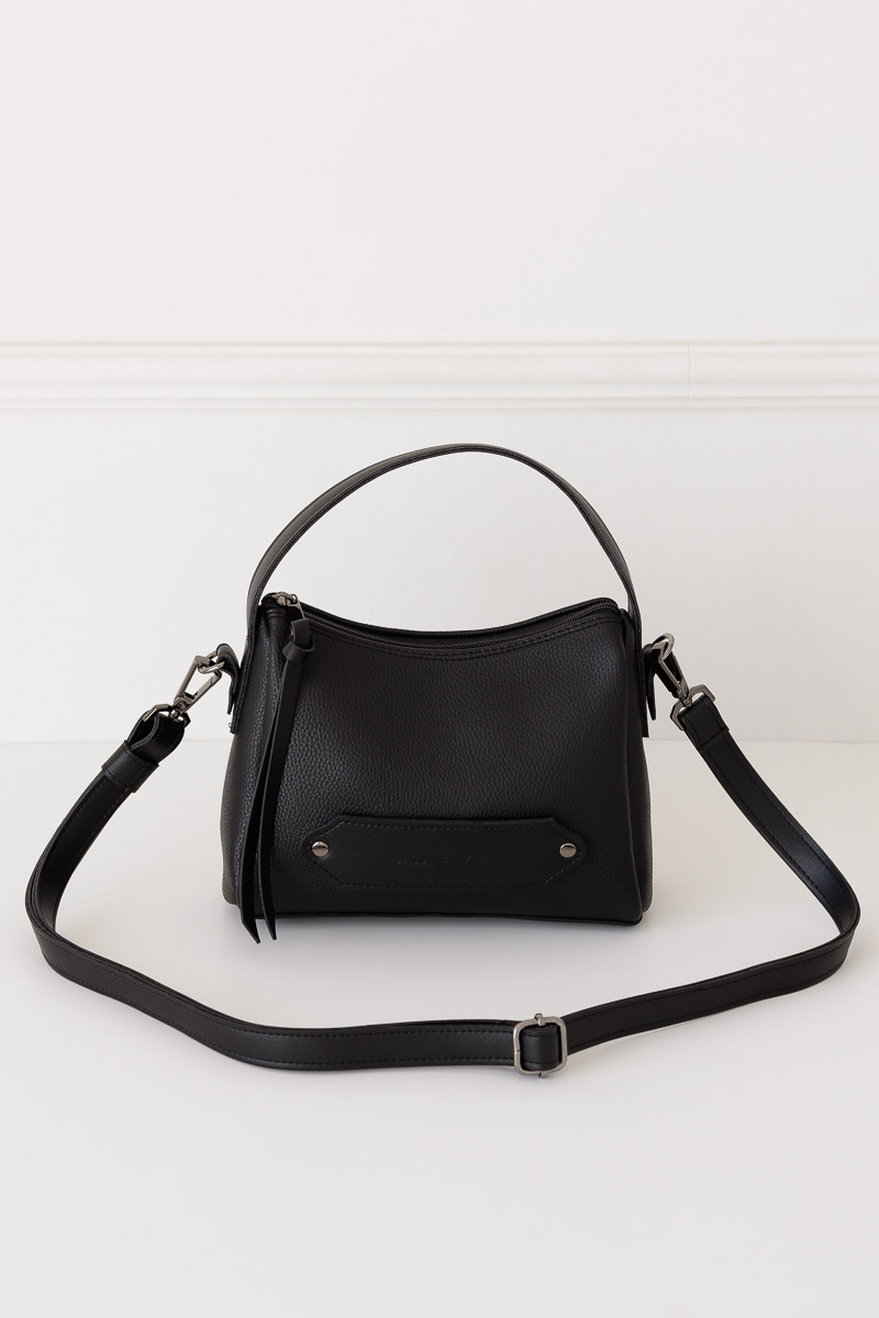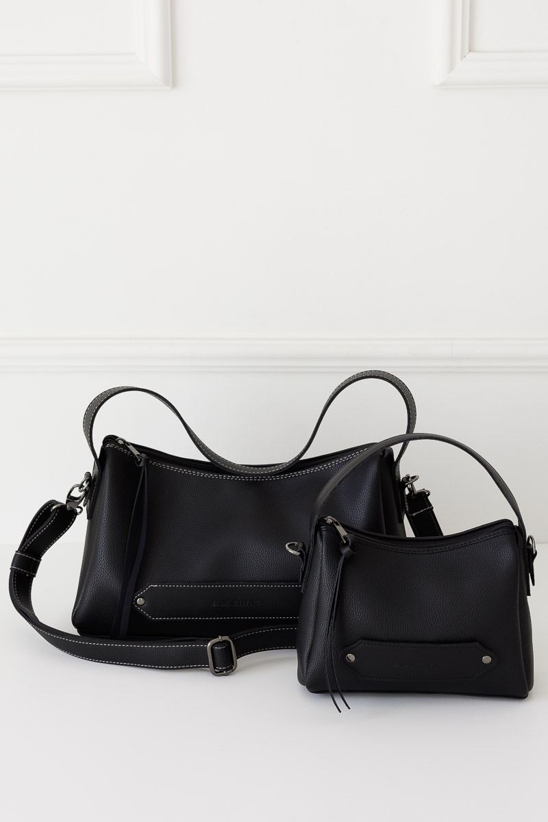 Welcome your new sophisticated and modern companion, the GONDOLA hobo bag in a smaller version. Designed to accompany you every day from morning to night, this bag combines style and practicality. With a capacity to accommodate all the necessary items, 3 different handles, can be held like a large clutch and has a long removable adjustable handle. Handcrafted with a combination of 2 materials, rich soft synthetic leather with texture and smooth synthetic leather. Inside zip pocket and zip closure, brand print on the front handle and metallic details, GONDOLA will bring out your style and elegance on a daily basis.