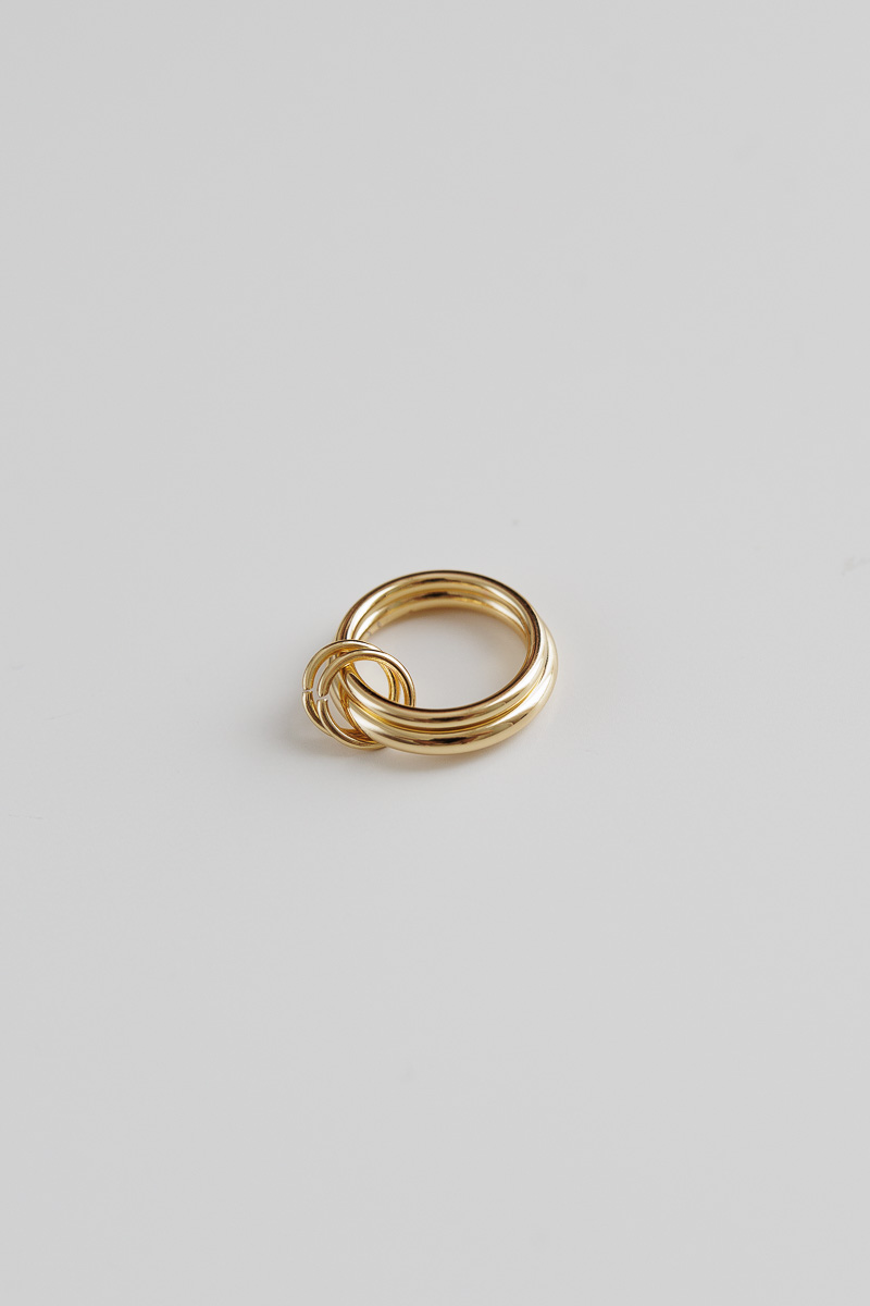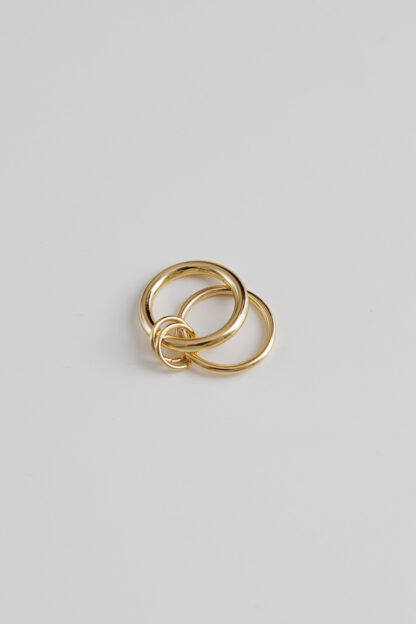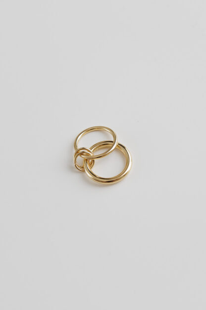 Ένα άκρως εντυπωσιακό δαχτυλίδι με δύο ενωμένες βέρες. Ένα statement κόσμημα που προσθέτει μοντέρνο ύφος στο στυλ σου. Φόρεσε μόνο του το καθένα ή όλα μαζί για πιο εντυπωσιακό look. Κατασκευασμένο από επιχρυσωμένο ατσάλι για να είναι ανθεκτικό στην καθημερινή χρήση.