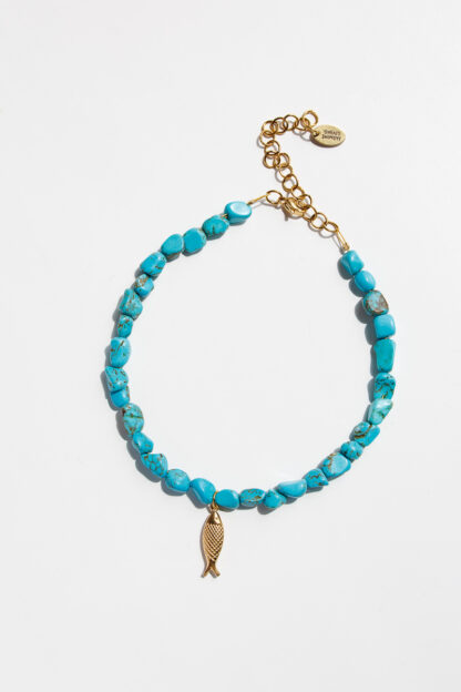 Υλικό: Επιχρυσωμένο ατσάλι (stainless steel), τυρκουάζ ημιπολύτιμες πέτρες