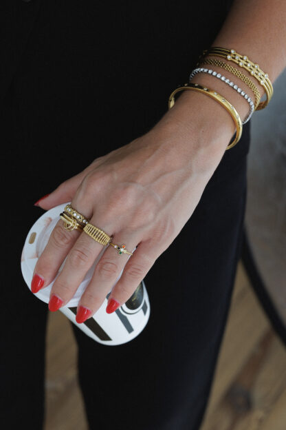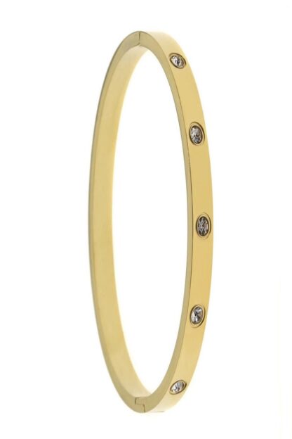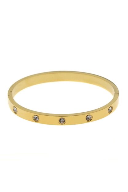 Ένα statement εντυπωσιακό κόσμημα κατασκευασμένο από ατσάλι και ζιργκόν. Αυτό το βραχιόλι χαρίζει πολυτέλεια και λάμψη σε κάθε εμφάνιση και είναι ιδανικό να την φορέσεις από το πρωϊ μέχρι το βράδυ για τις απόλυτες fashion statement και λαμπερές εμφανίσεις.