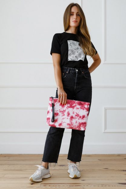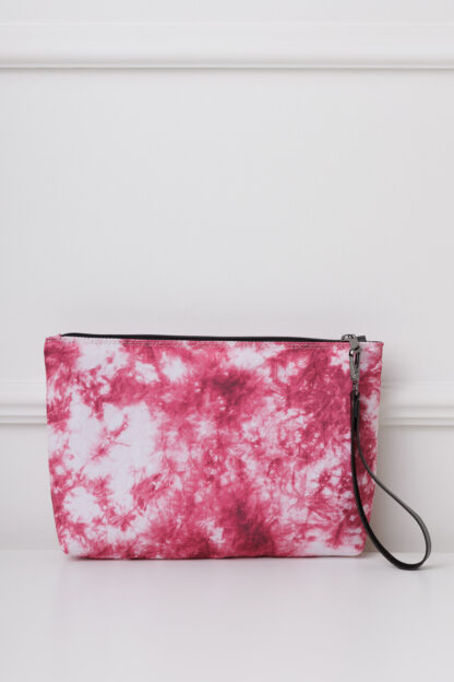 Το απαραίτητο καλοκαιρινό αξεσουάρ, το πολυχρηστικό clutch TIE DYE. Αποκλειστκό print σε αδιάβροχο ύφασμα, με φόδρα γκρι ριγέ, εσωτερική τσέπη, χεράκι αποσπώμενο και κλείσιμο με φερμουάρ. Αυτό το clutch θα σε συνοδεύει από το πρωί μέχρι το βράδυ σε κάθε καλοκαιρινή σου βόλτα και έχει άπλετο χώρο για να το χρησιμοποιείς και στην παραλία αλλά και να το κρατάς σαν τσαντάκι.